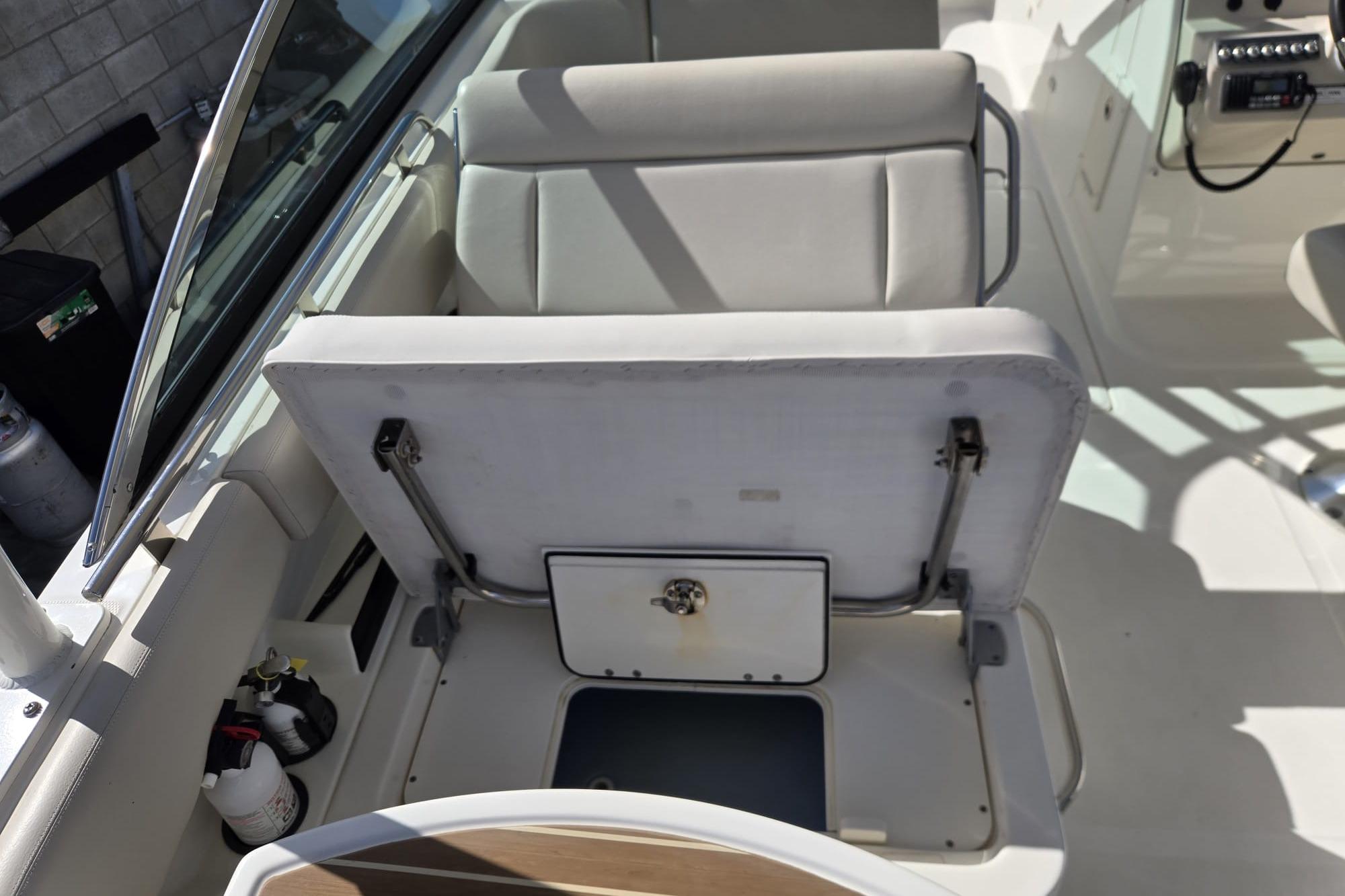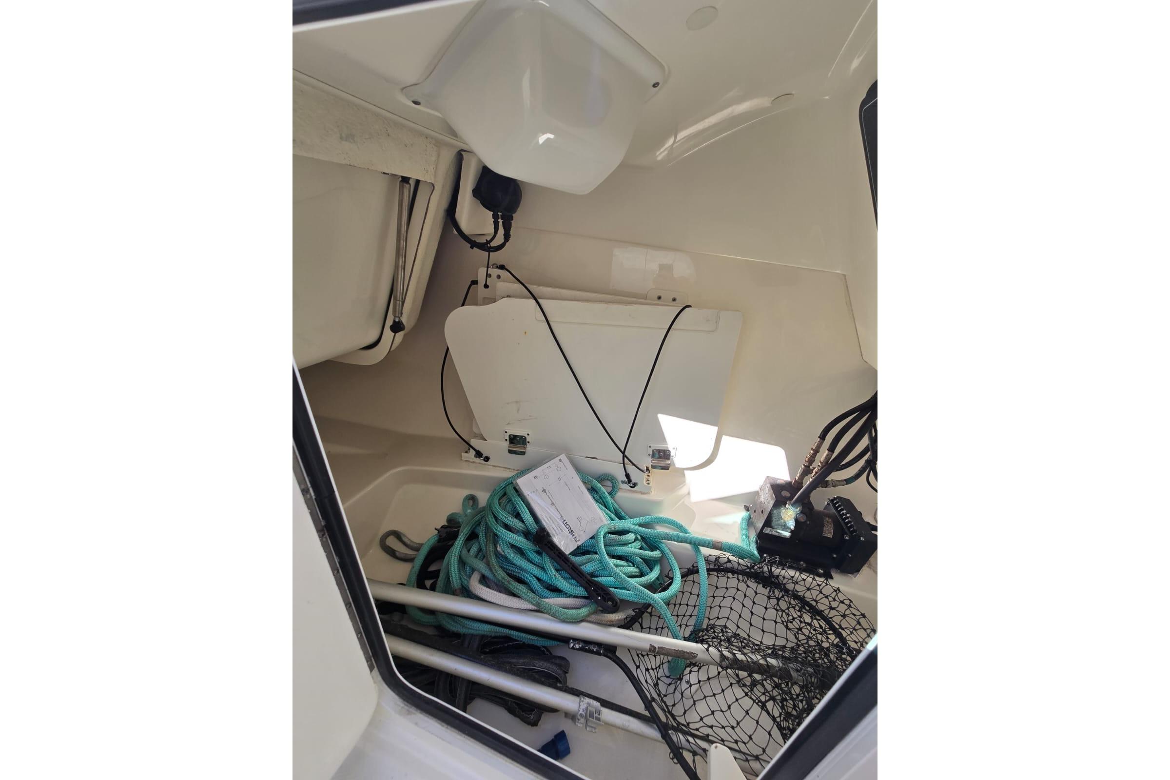 - Console storage with stainless steel latch with storage system for life jackets, dock lines, fenders