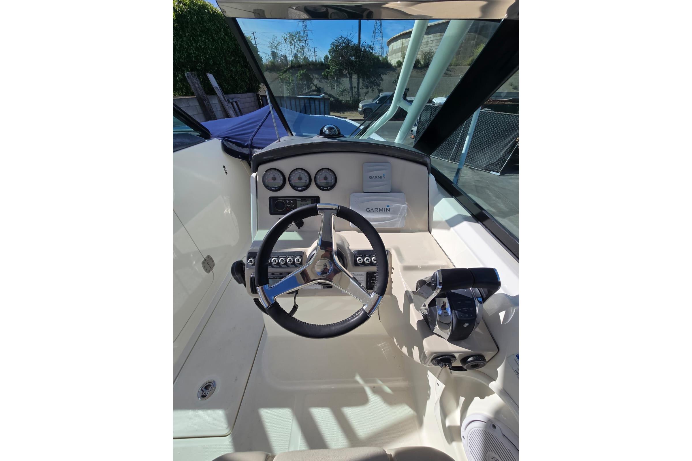 Introducing the 2014 Boston Whaler 270 Vantage, a remarkable dual console boat with an overall length of 28.25 feet. This used vessel boasts a robust fiberglass hull designed in a deep vee shape, ensuring exceptional stability and performance on the water. Equipped with twin Mercury Verado outboard engines, each delivering 225 horsepower, this boat promises thrilling adventures with a total of 450 horsepower. The stainless steel 4-blade propellers enhance efficiency and responsiveness, making every journey enjoyable. Designed for comfort and socializing, the Vantage accommodates up to 12 passengers, making it perfect for family outings or gatherings with friends. Its thoughtful features ensure a delightful experience, whether you’re cruising along the coast or anchoring for a day of fun. The Boston Whaler 270 Vantage is a perfect blend of performance, comfort, and style, ready to create unforgettable memories on the water.