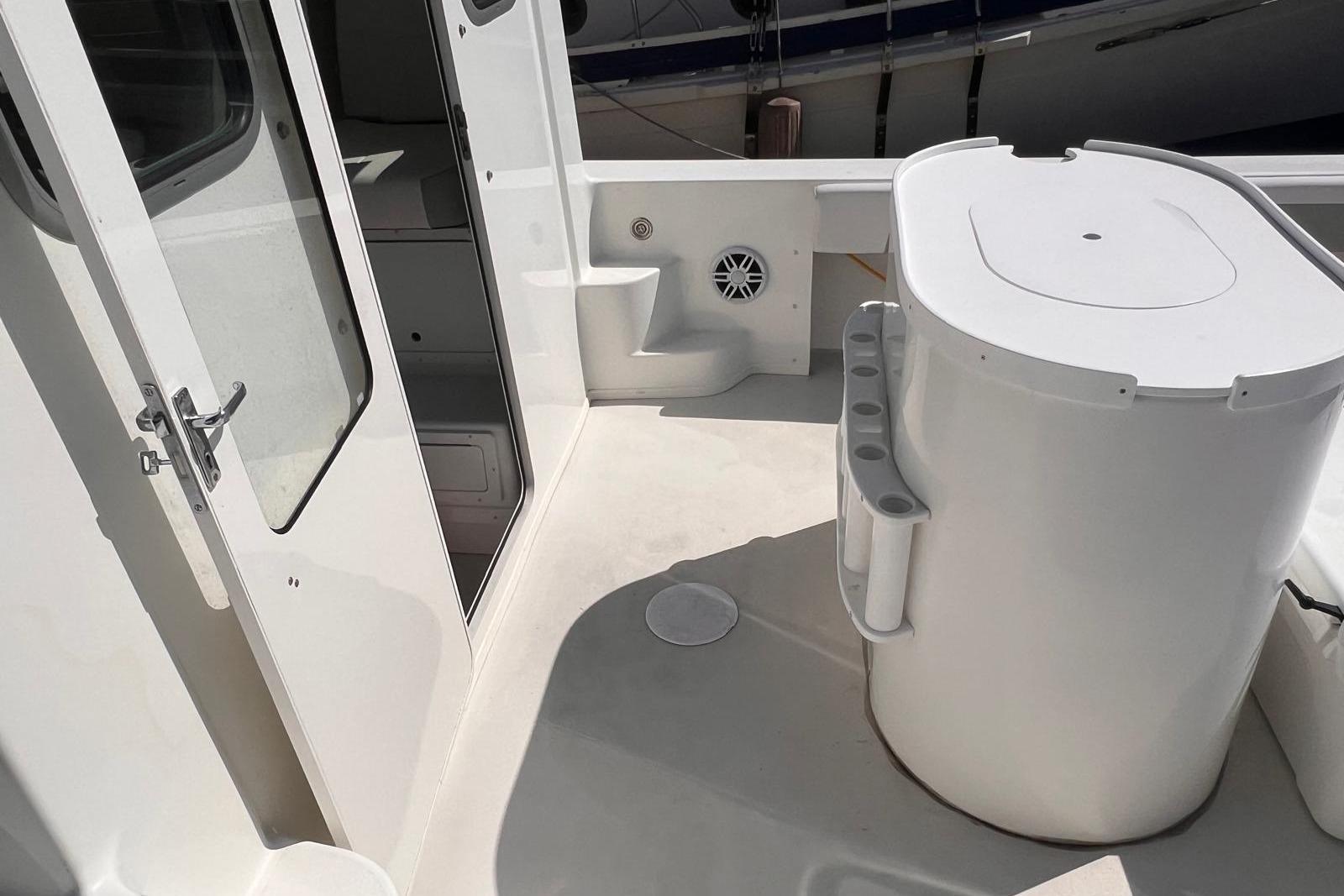 Full Transom with Transom Door, Engine Bracket, Boarding Ladder, Insulated Fish Box and Livewell