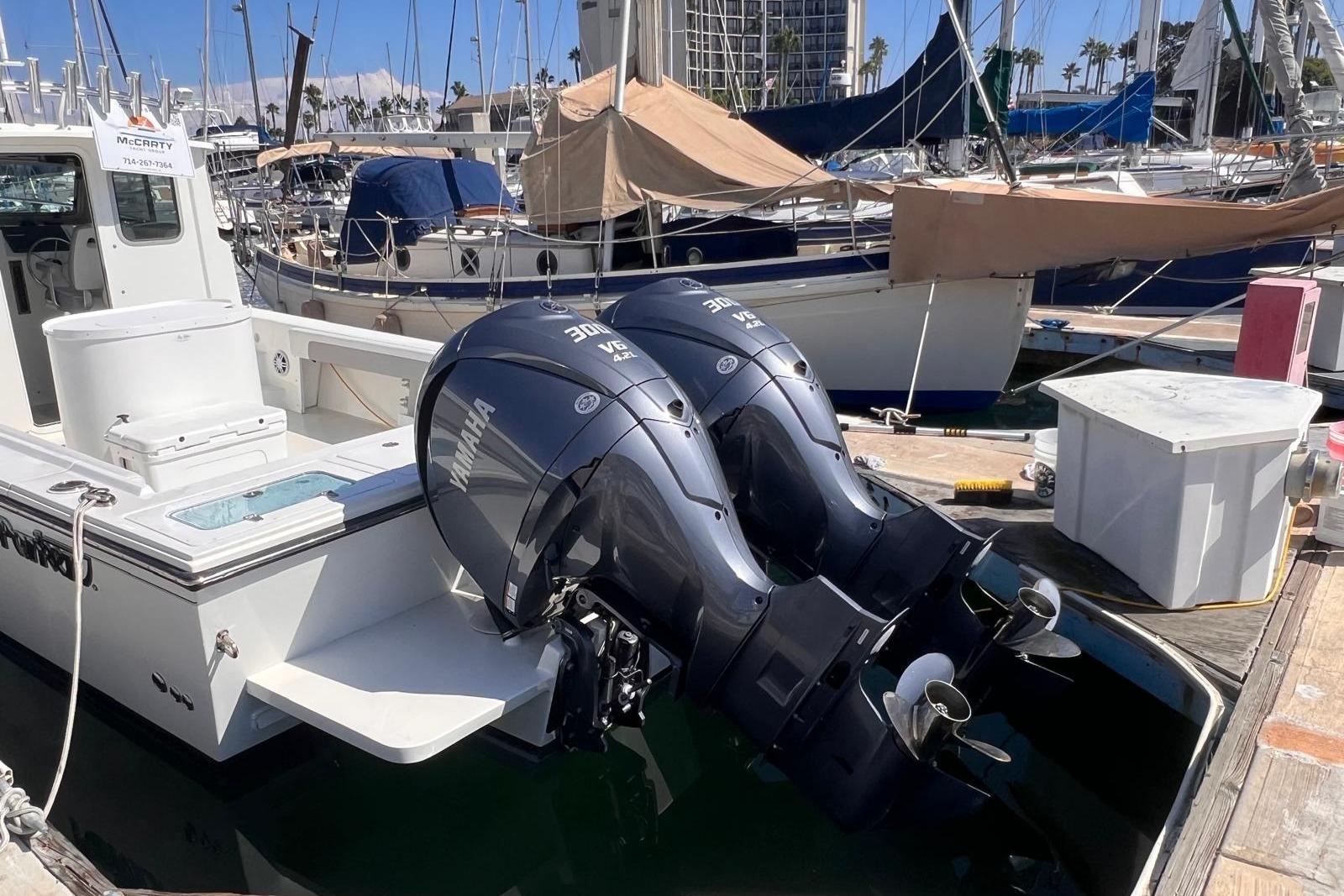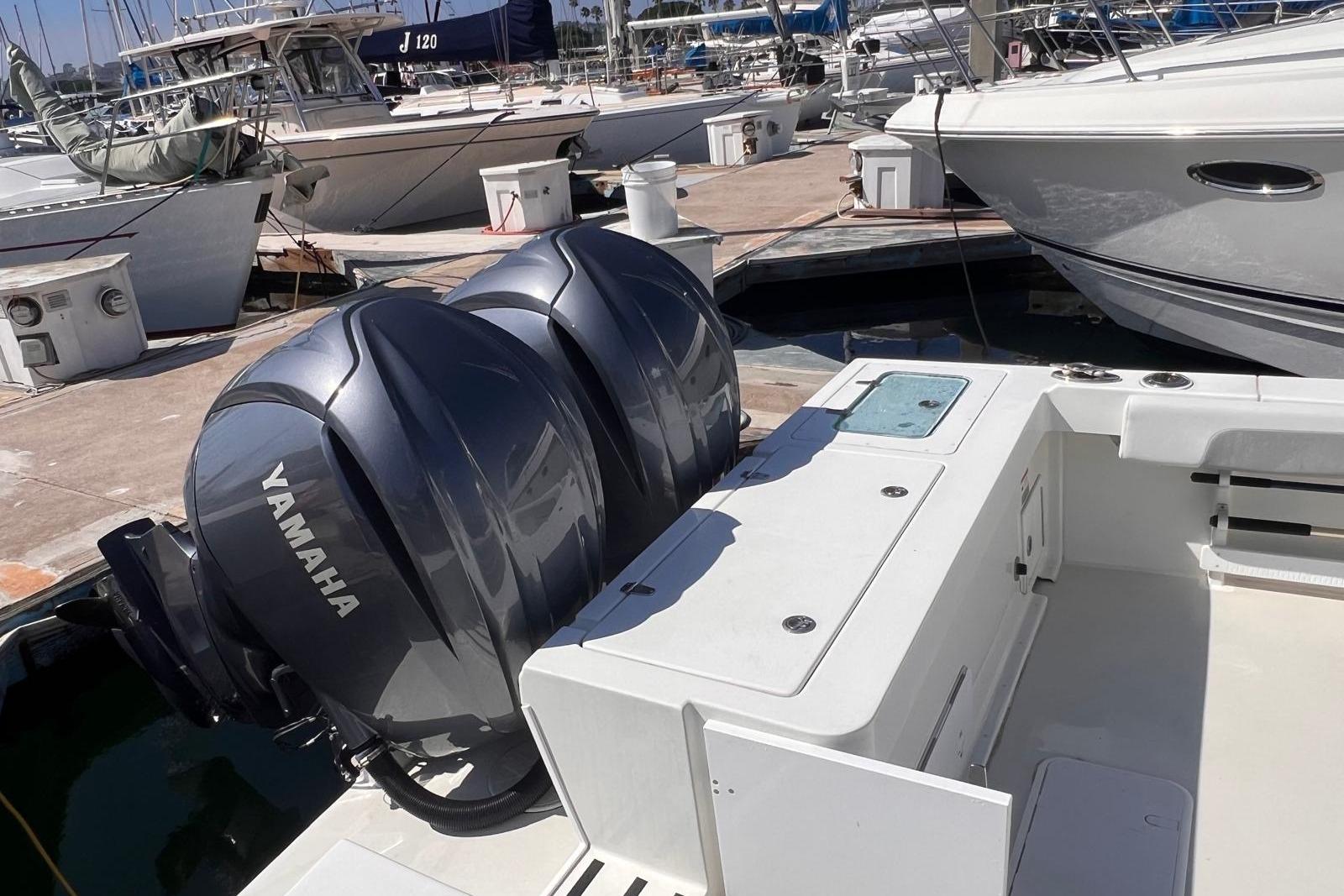 - Twin Yamaha F300 Outboard Engines (2023 model year, Gasoline, 4-Blade Stainless Steel Props)