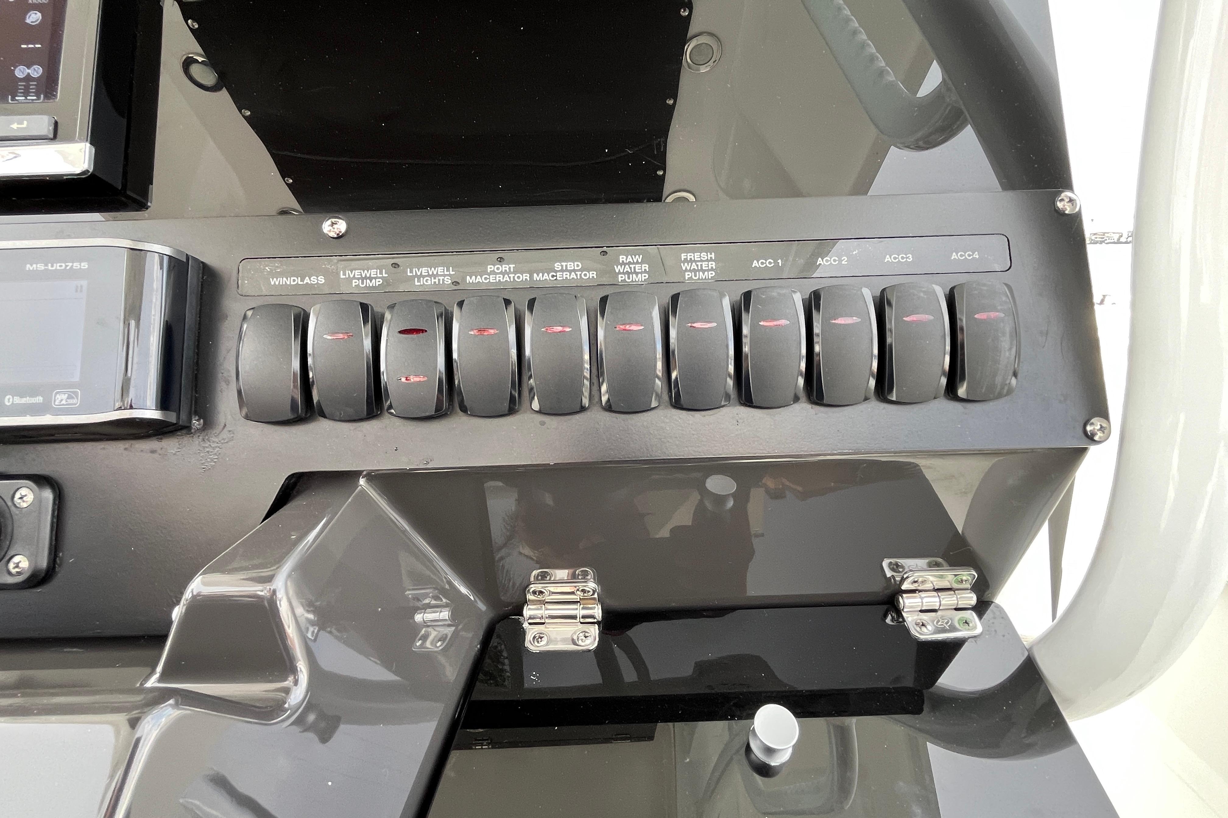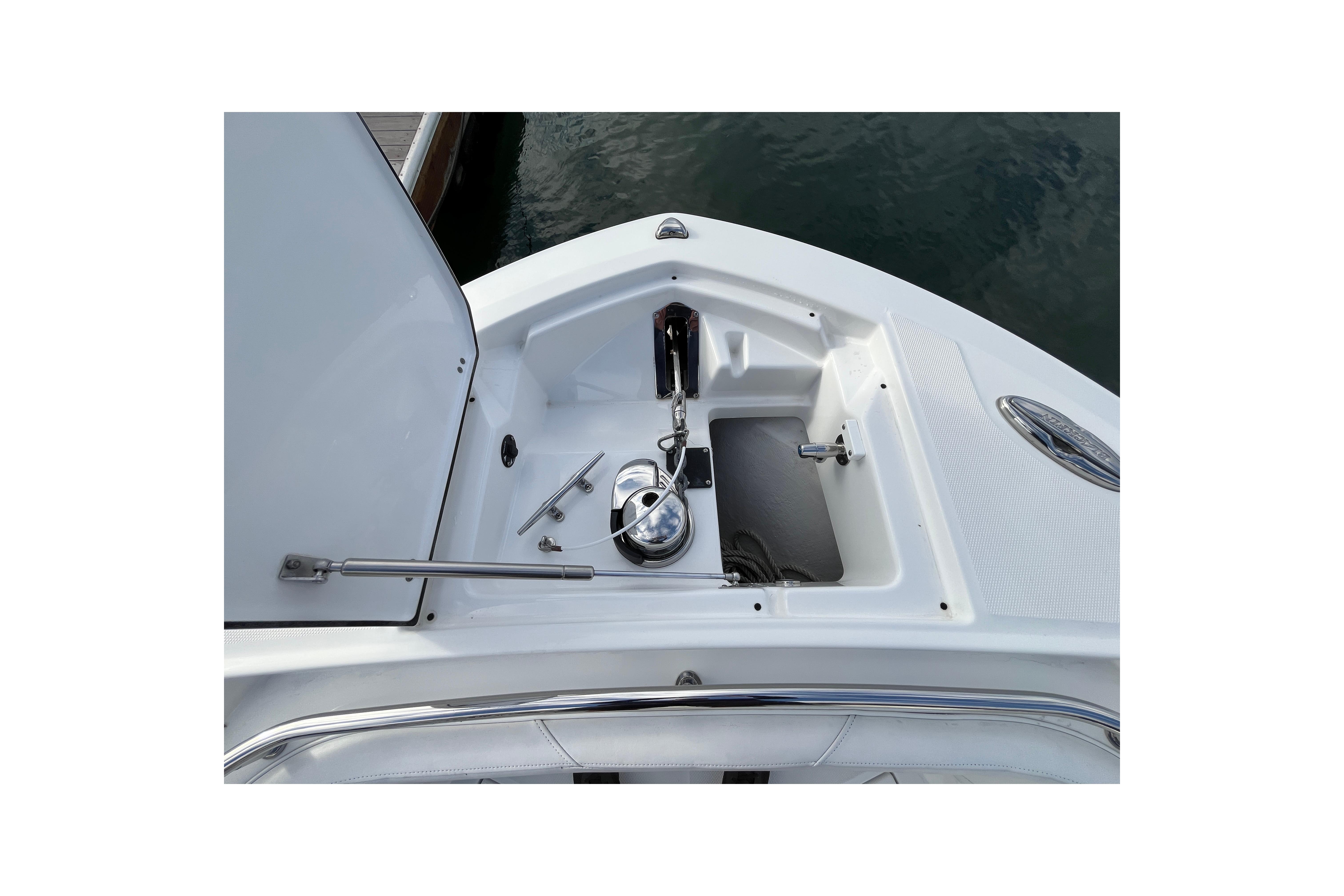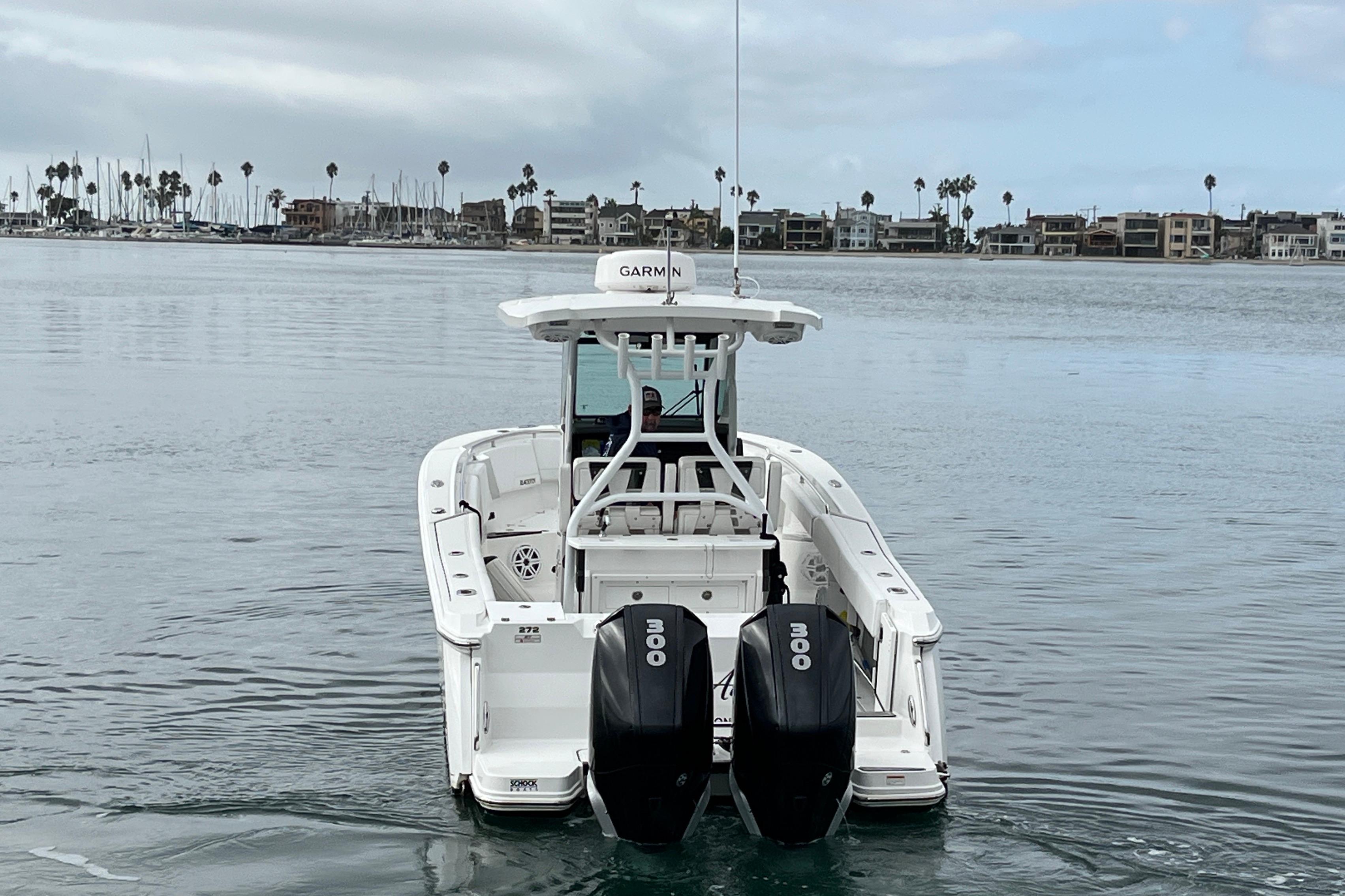 Twin low-hour Mercury Verado's 300 with over 30 knot cruising speed. Garmin Electronics. Built in transom live bait tank, 2 large in-deck fish holds. 14 on-deck rod holders and built in tackle storage.